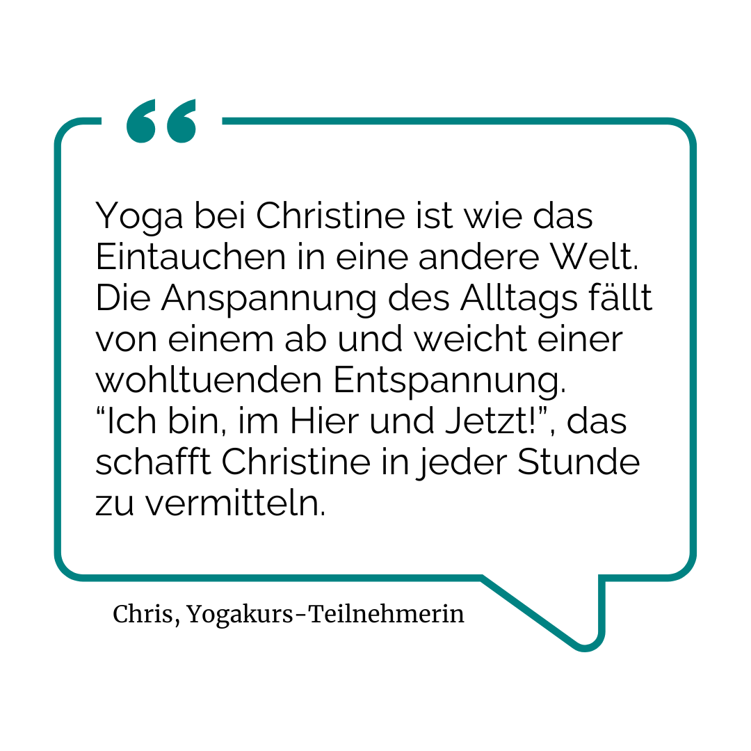 Sie möchten einen Platz im Yogakurs anfragen oder haben Fragen zu meinem Yoga-Angebot? Schreiben Sie mir gern, ich melde mich zeitnah bei Ihnen zurück - herzlich, Christine Cornelius